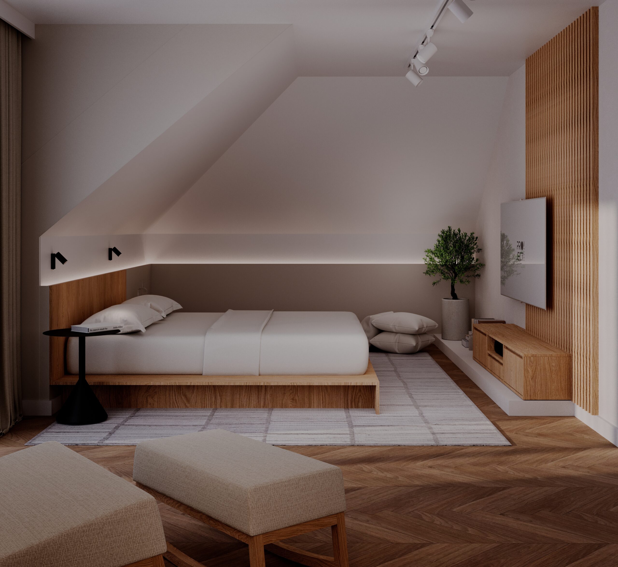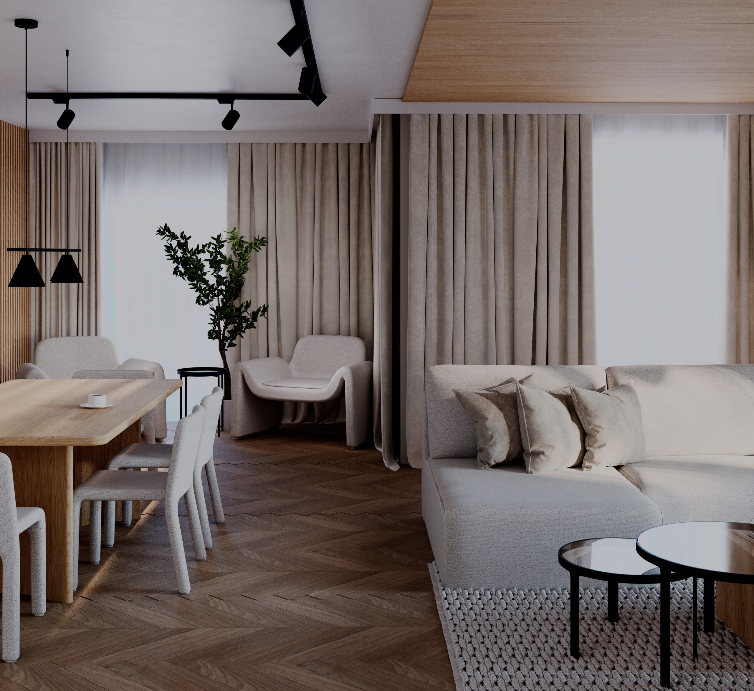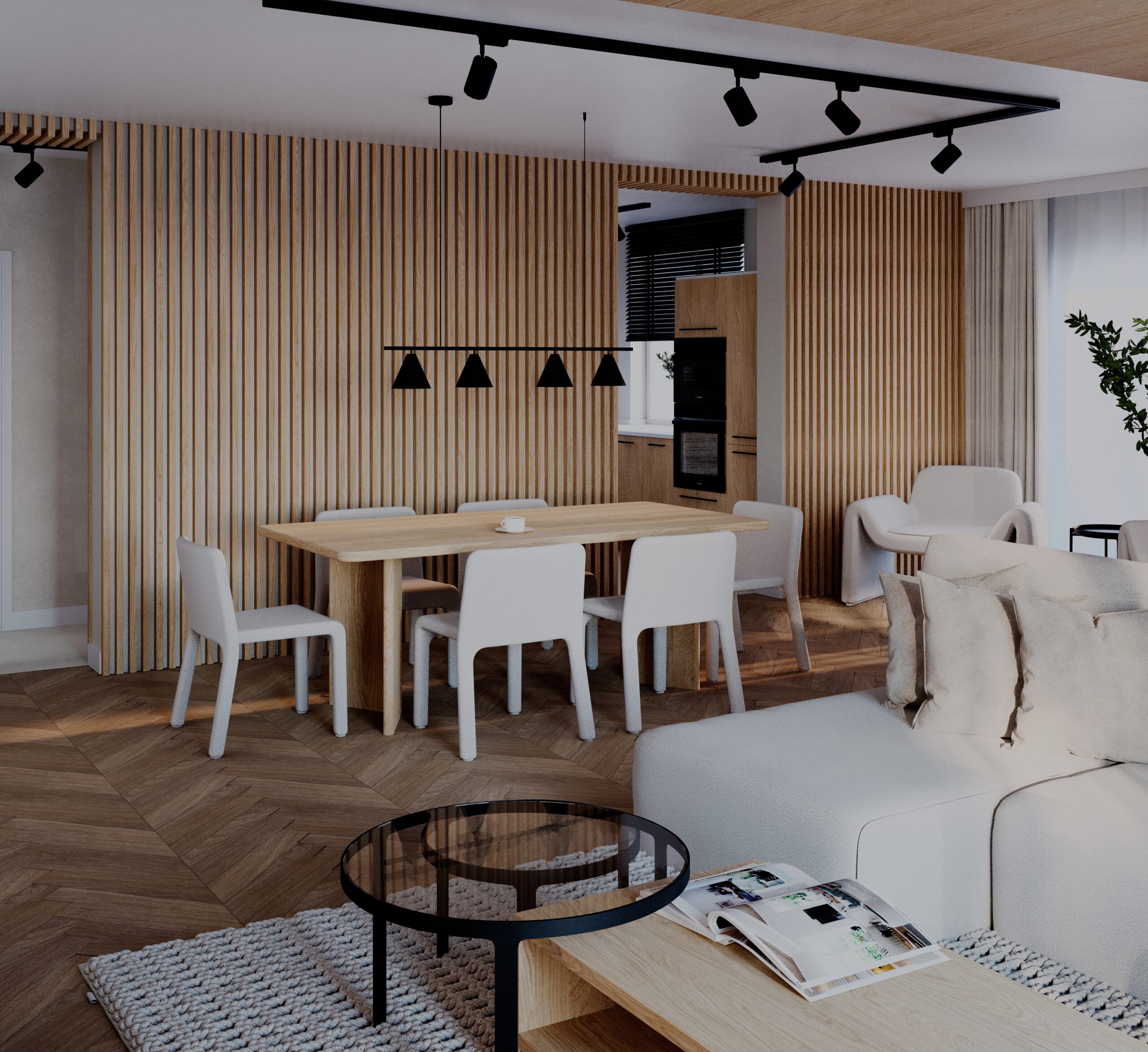 Ten dom o powierzchni 150 m² opiera się na redukcji do tego, co istotne. Architektura wnętrza nie dominuje, lecz porządkuje codzienność poprzez rytm materiałów, światła i proporcji. Naturalne drewno, matowe powierzchnie i miękkie przejścia tonalne tworzą przestrzeń, która wycisza i pozwala zwolnić. Projekt skupia się na jakości dotyku, pracy światła w ciągu dnia oraz relacji między pustką a formą. Każdy element ma swoje uzasadnienie — nic nie jest przypadkowe, nic nie jest nadmiarowe. Dom funkcjonuje jako tło dla życia, a nie jego dekoracja. Minimalizm został tu potraktowany jako proces, nie styl. To przestrzeń dla ludzi świadomych, ceniących spokój, trwałość i ponadczasowość. Architektura wnętrza staje się doświadczeniem, które dojrzewa razem z użytkownikiem.